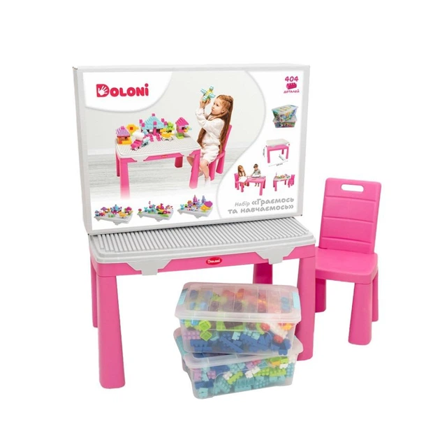 Ігровий стіл з конструктором 6319 зі стільчиком, 99 деталей конструктора, двостороння стільниця