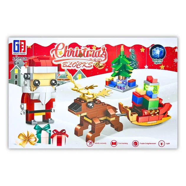 Конструктор Christmas 245 деталей Дід Мороз на санях з подарунками, 123-495