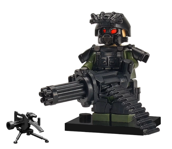 Фігурка армія бійця спецназу з мініганом та туреллю в зелено-чорній броні