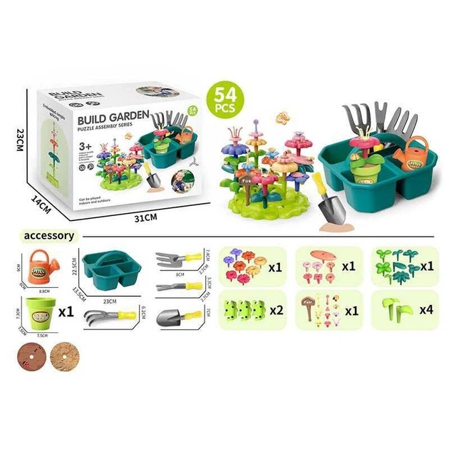 Конструктор A 42-5 “Квітковий сад”, набір садівника, 54 елементи, граблі, лопата, вила, лійка, вазон, квіти, у коробці