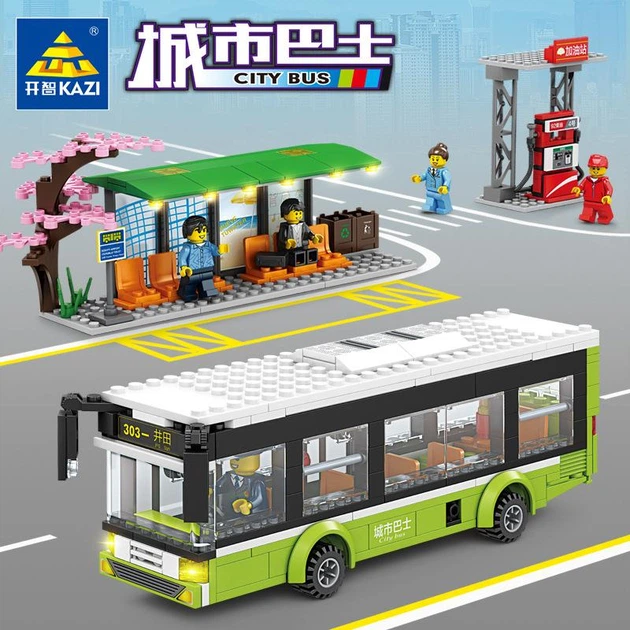 Конструктор автобус з пасажирами Kazi 98271, 415 деталей, зупинка, заправка