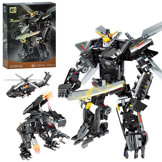 Конструктор 3в1 Робот динозавр вертоліт 850 деталей, 88036A