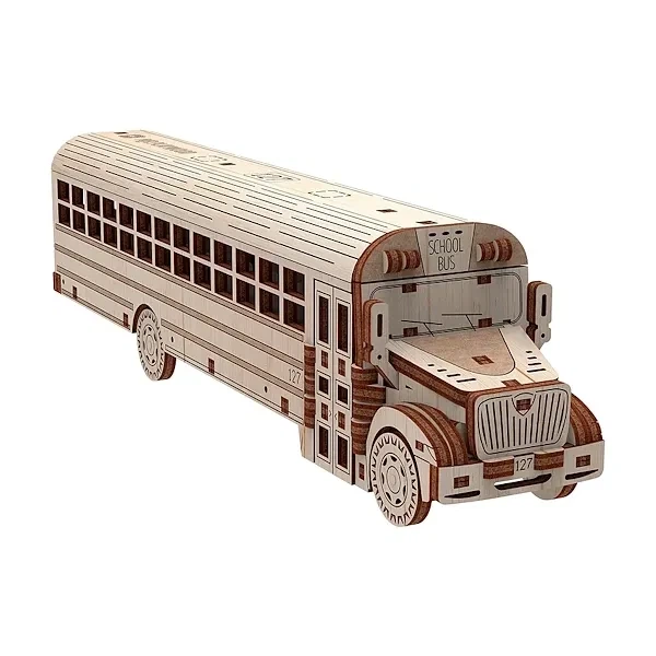 Конструктор пазл механічна деревяна 3D модель Шкільний автобус Mr.Playwood 10107