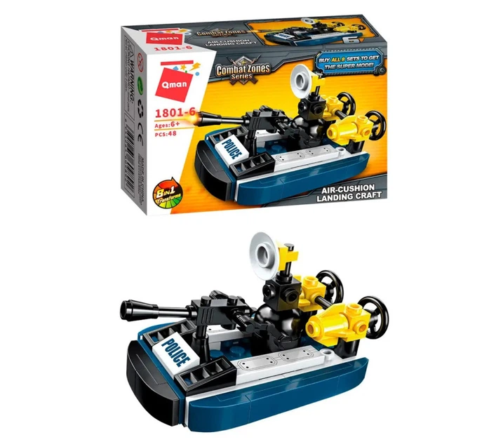 Конструктор Qman 1801-1-8 поліція, транспорт, 45-49 деталей Катер на подушці