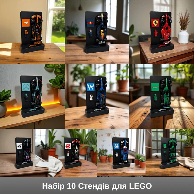 Набір 10 шт. Стенд Підставка для Конструктора LEGO Speed Champions для (10 машинок) – 66802, 77242, 77243, 77244, 77245, 772