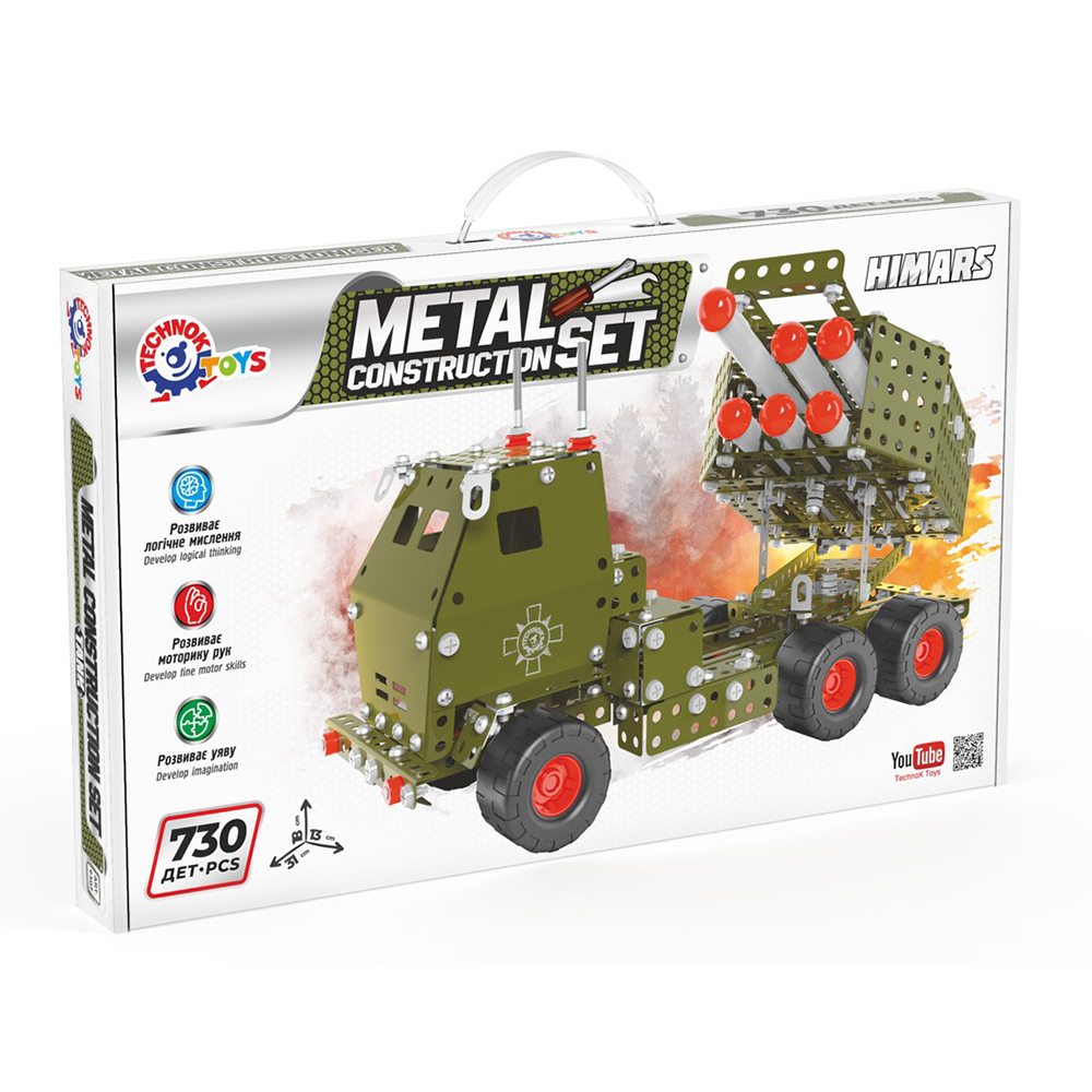 Конструктор Technok Himars — ідеальний подарунок для дітей, які люблять військову тематику та конструювання. Однією з особливостей металевого конструктора Himars є ракетна шахта, яка може підійматися та опускатися, а також повертатися на 360 градусів. Крім того, у конструкторі є зйомні ракети, які дозволять дітям відчути себе справжніми військовими стратегами. Металеві конструктори Technok