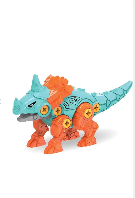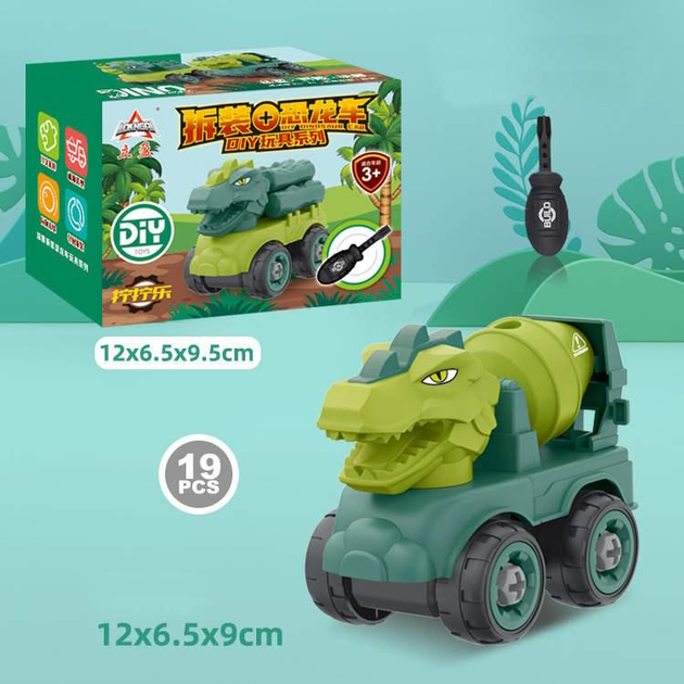 Конструктор пластиковий розвиваючий на шурупах "Динозавр-машинка" - Т-рекс бетономішалка