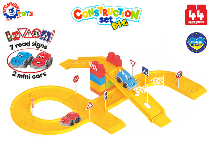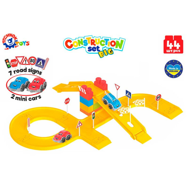 Конструктор ТехноК 8331 з трасами, машинками та дорожніми знаками для дітей 3+, безпечний пластик