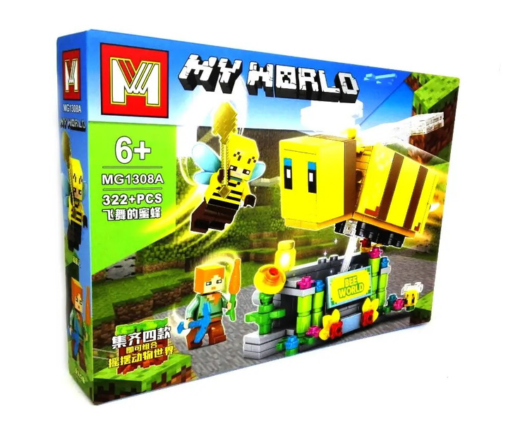 Конструктор блочний пластиковий Minecraft My World Світ бджіл Майнкрафт 322 деталі, 34х5.5х24 см