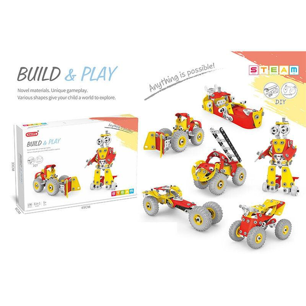 Конструктор J 7718 (18/2) 196 елементів, інструменти, пластикові та гумові деталі, в коробці