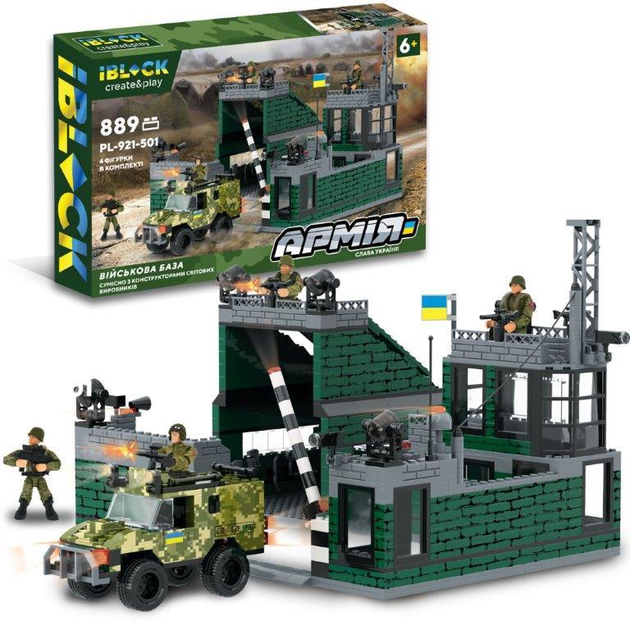 Конструктор пластиковий Військова база Збройних сил України 889 деталей iBlock 46*28,5*6,4 см