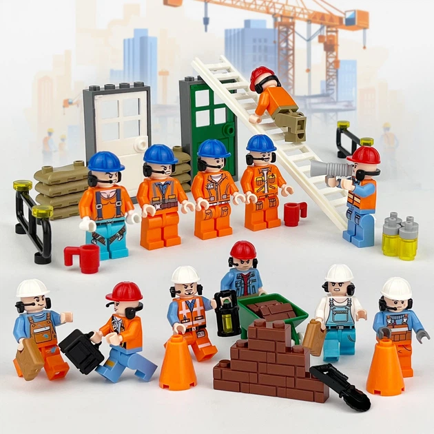Набір фігурок будівельників та робітників з аксесуарами - 12 мініфігурок