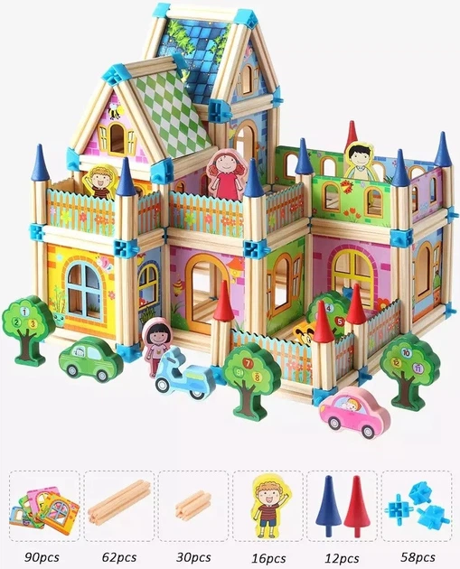 Конструктор для дітей Дерев'яний Будиночок 268 Деталей