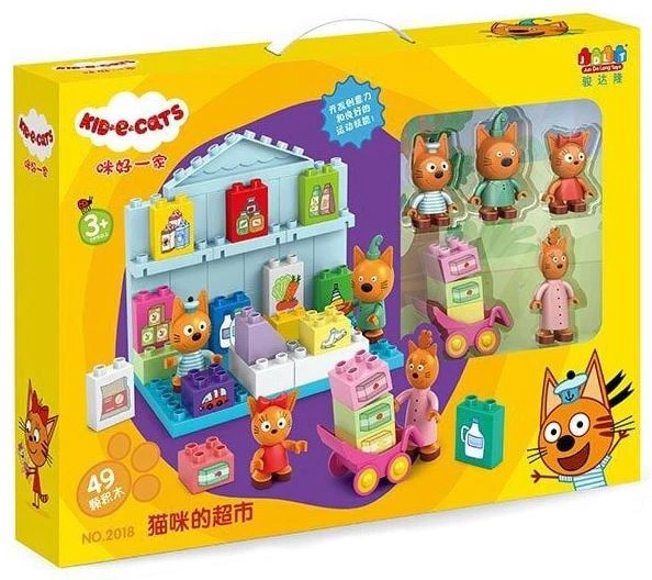 Конструктор з великими деталями Магазин Три кота, 49 елементів, 4 фігурки героїв, пластикові деталі, рухомі елементи (2018)