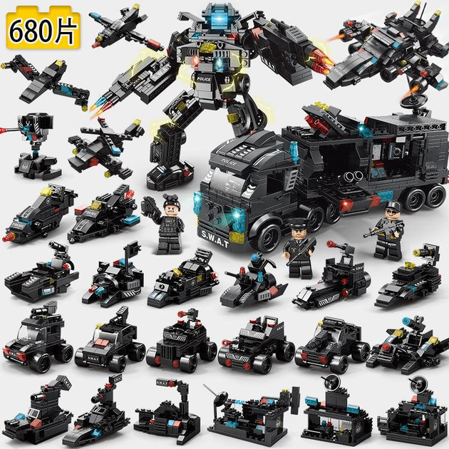 Конструктор Поліція SWAT ЗСУ 680 деталей 28 в 1 Конструктори військові поліцейські для хлопчиків