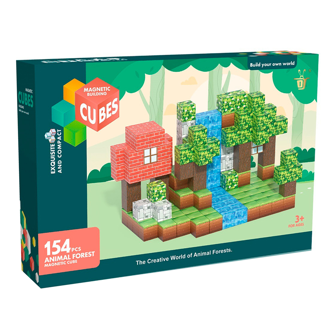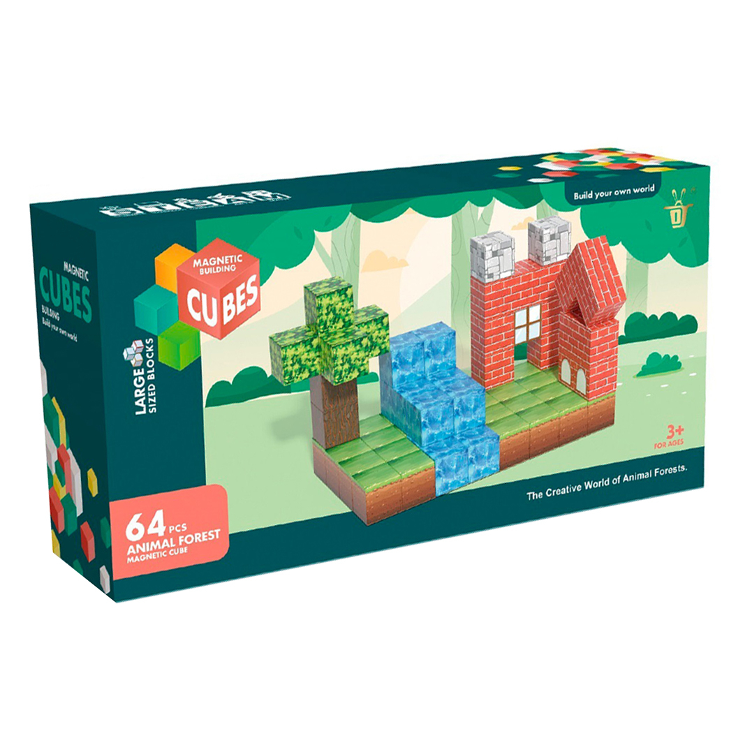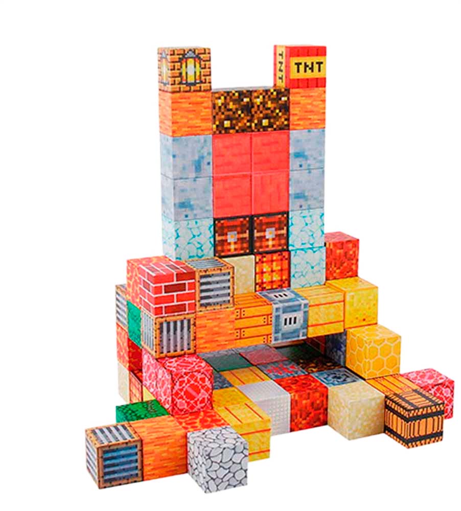 Розвиваючий набір з 72 кубиків у стилі blind-box (сюрприз у кожному блоці). Кубики з’єднуються між собою за допомогою магнітів, що дозволяє створювати цікаві конструкції, форми, башти й навіть будівлі в стилі Minecraft. У комплекті: 72 магнітні блоки (розмір 2×2×2 см); мішечок для зберігання; інструкція.