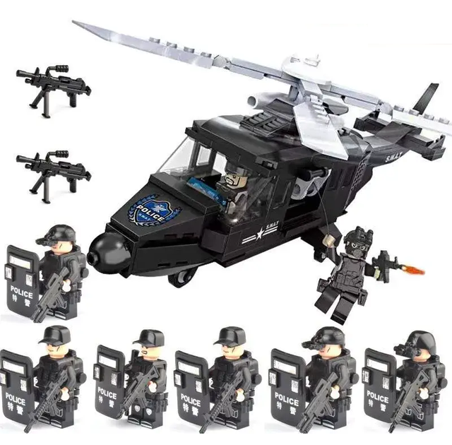 Поліцейський вертоліт SWAT з бійцями та щитами - 8 фігурок і техніка