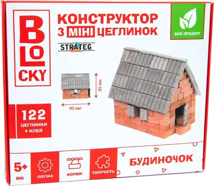 Будівельний набір конструктор з міні-цеглинок 122шт BLOCKY Будиночок в коробці 14*12*4см, Стратег, Україна,