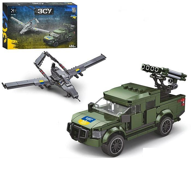 Конструктор дитячий військовий машина з безпілотником байрактар 486 деталей у коробці KL KB1104