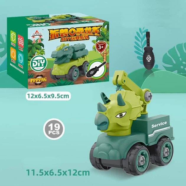 Конструктор пластиковий розвиваючий на шурупах "Динозавр-машинка" - трицератроп кран