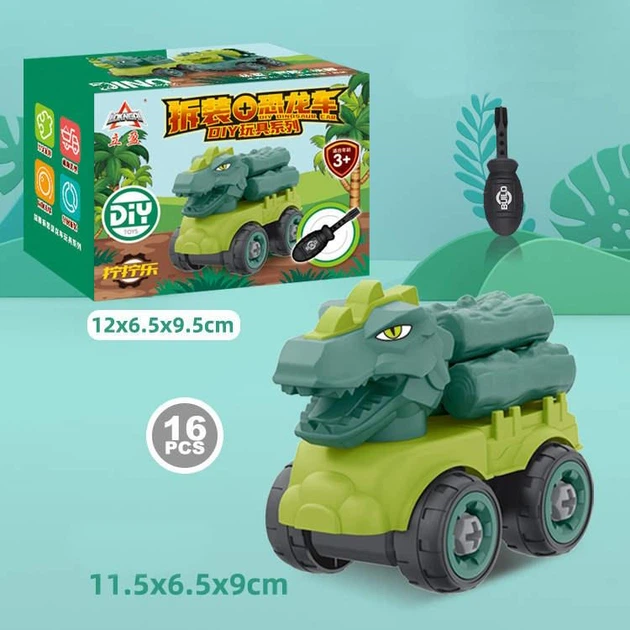 Конструктор пластиковий розвиваючий на шурупах "Динозавр-машинка" - трицератроп пікап