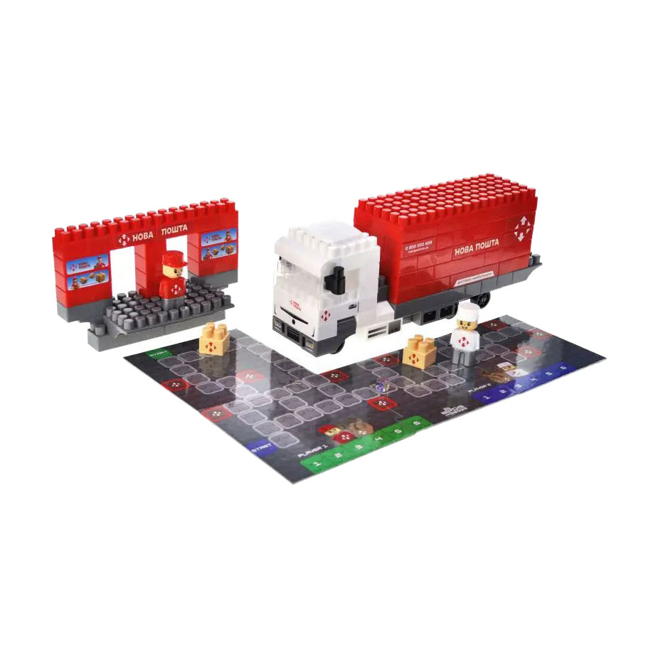 Конструктор блочний Qbee Block & Steps: НОВА ПОШТА. Вантажівка Мрії + ходилка і гра 3 в 1, 129 деталей, від 3 років (QB300-2