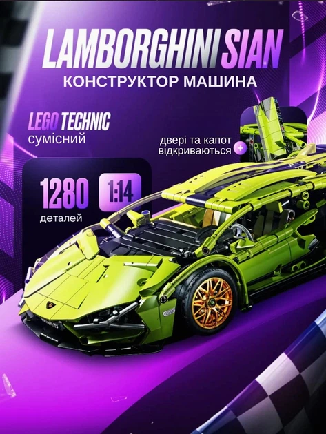 Конструктор лего машинка спортивна гоночна lamborghini автомобільний набір для складання ламборджині 1280 деталей набори leg