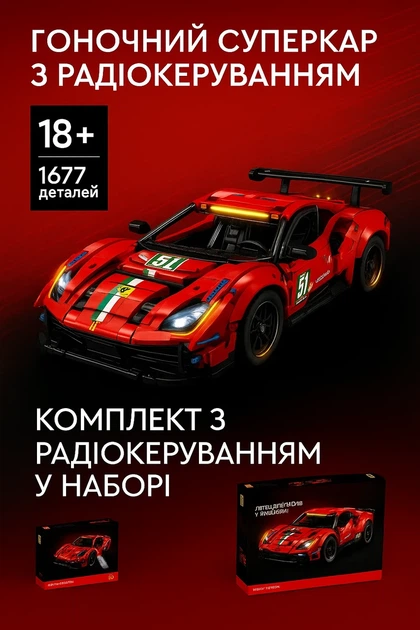 Конструктор перегонова машинка Ferrari 488 GTE на Радіокеруванні (1677 деталей)