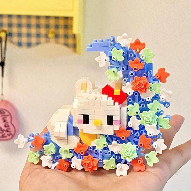 Конструктор Хеллоу Кітті на місяці у квітах Синій 400 деталей 10 см Hello Kitty Blue