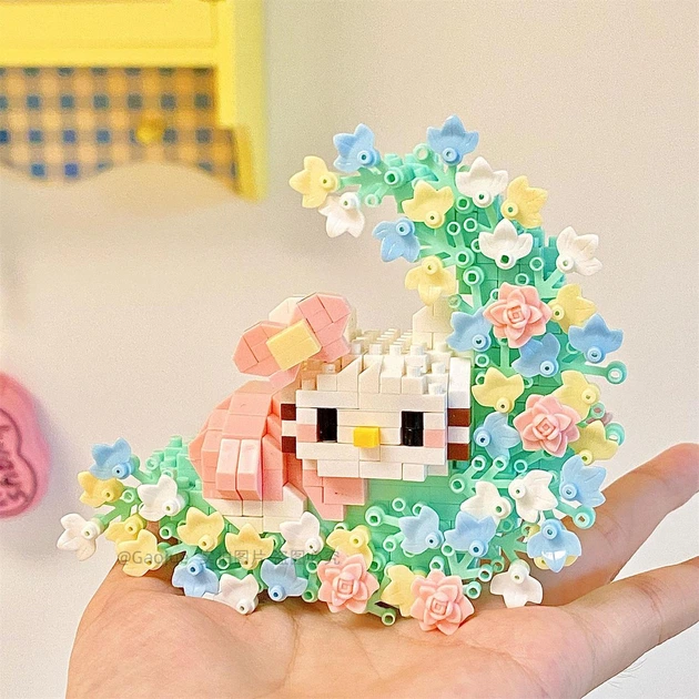 Конструктор Хеллоу Кітті на місяці у квітах Рожевий 400 деталей 10 см Hello Kitty Pink