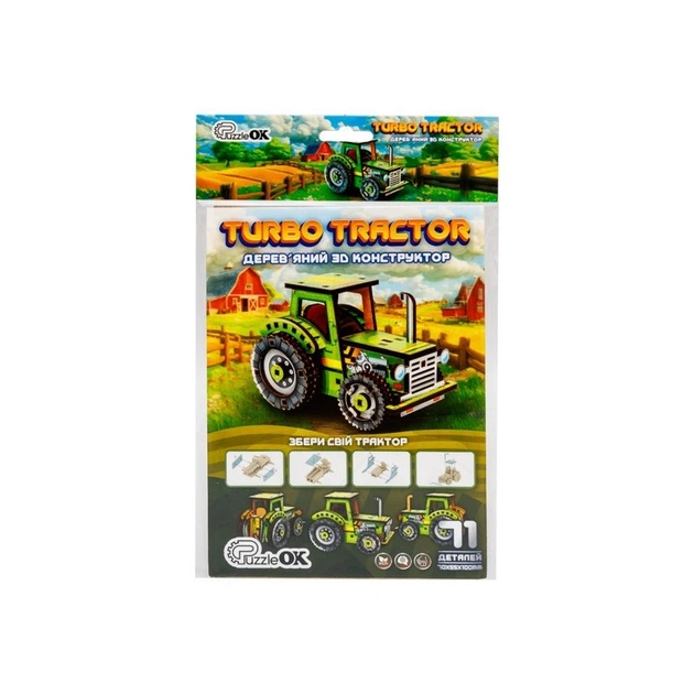 Дитячий дерев'яний 3D конструктор "Tурбо трактор" Puz-00960, 71 деталь