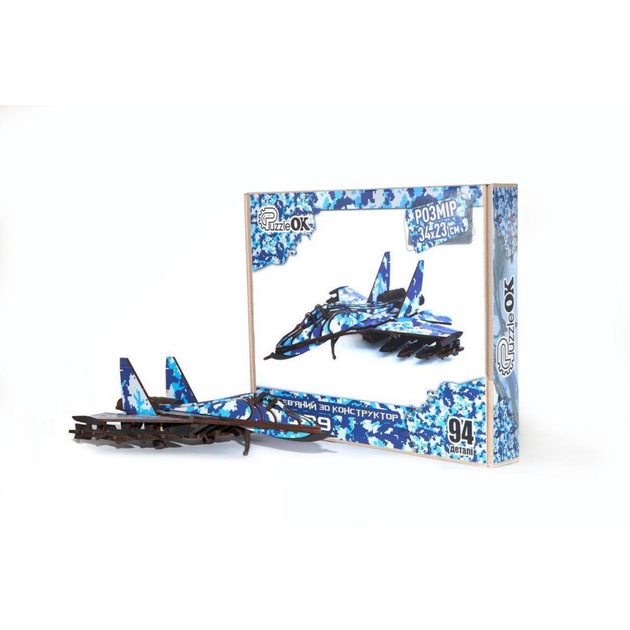 Дерев'яний 3D конструктор "МІГ-29" 94 деталі PuzzleOK Різнобарвний 000305136