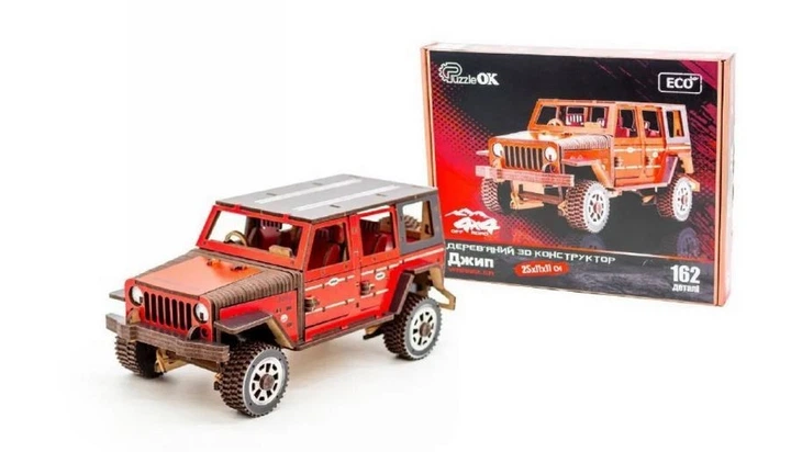 Дерев'яний 3D конструктор Джип Wrangler 162 деталі, ігрова машинка з дерева