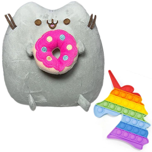 М'яка іграшка Pusheen Cat 18х15см з Пончиком Сірий та Іграшка антистрес Pop It Єдиноріг v-13188
