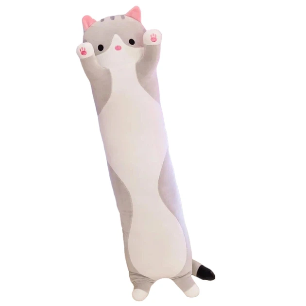 Декоративна подушка обіймашка валик батон Кіт 50 см Сірий