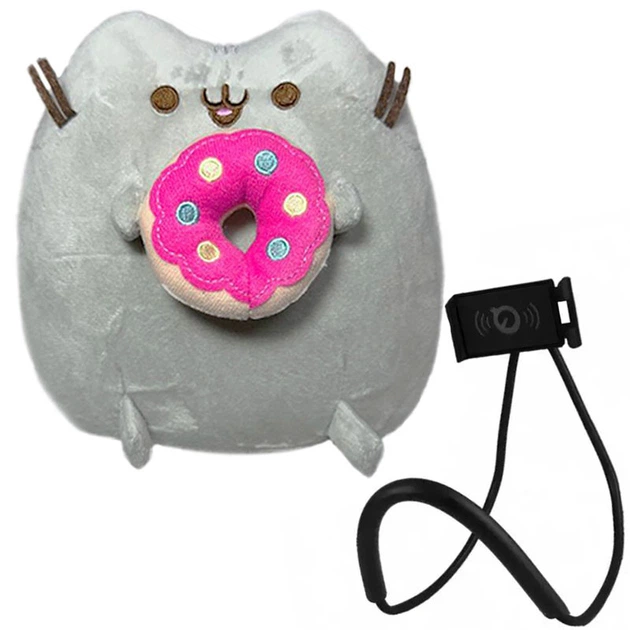 М'яка іграшка Pusheen Cat 18х15см з Пончиком Сірий та Тримач для мобільного телефону Чорний n-13178