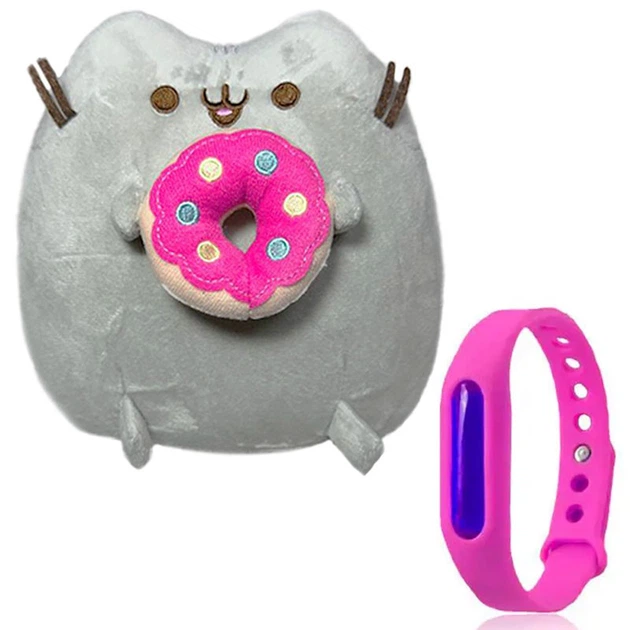 М'яка іграшка Pusheen Cat 18х15см з Пончиком Сірий та Дитячий браслет від комарів Рожевий n-13179