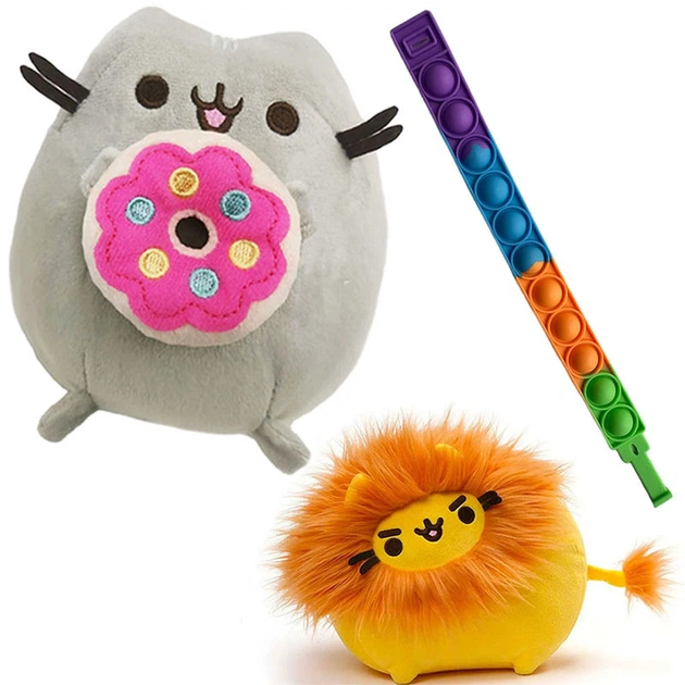 Набір м'які іграшки Pusheen cat Кіт з пончиком 15х12см Лев 10х7см та Браслет Pop It n-13010