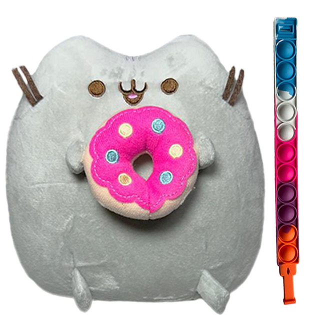М'яка іграшка Pusheen Cat 18х15см з Пончиком Сірий та Браслет антистрес Pop It v-13191