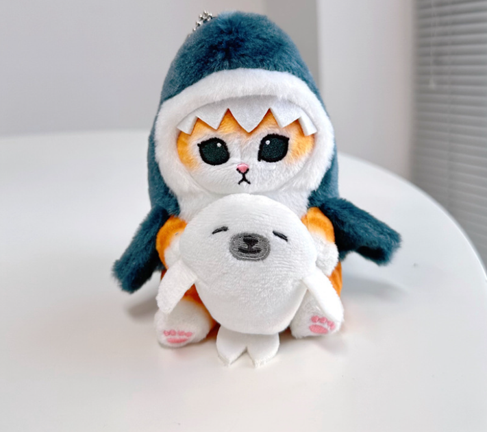 М’яка іграшка Кошеня-Акула плюшева з тюленем у лапках, 13 см