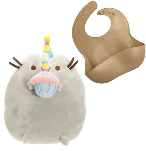 М'яка іграшка кот c Кексом Пуши кэт 12 х 15см і Слюнімчик силиконовий 30x23 см кофейний (vol-9708)