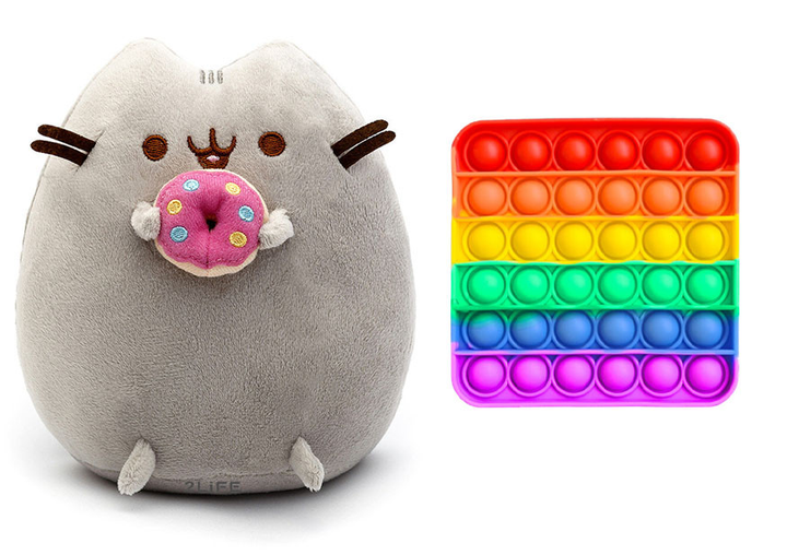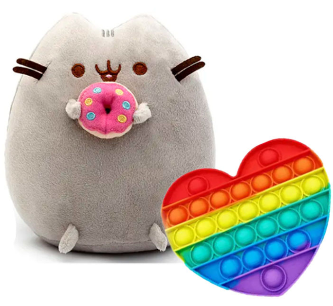 М'яка іграшка кот з Пончиком Пушин кэт 12 х 15см і Pop it Сердчечко (vol-2037)