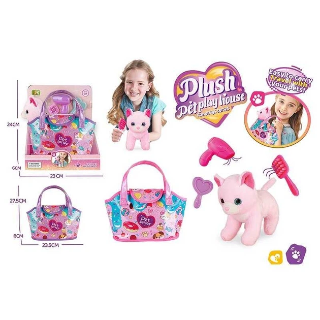 Тваринка в сумці DR 5140 "Кошеня", висота: 17 см, сумка-перенесення, пластикові очі, аксесуари, в коробці