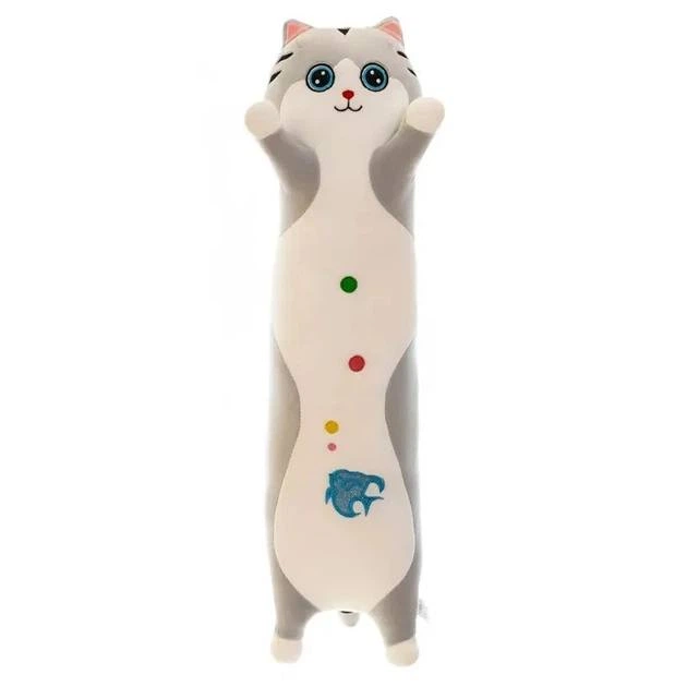М'яка іграшка подушка-обіймашка Кіт Батон з рибкою 100 см, сірий