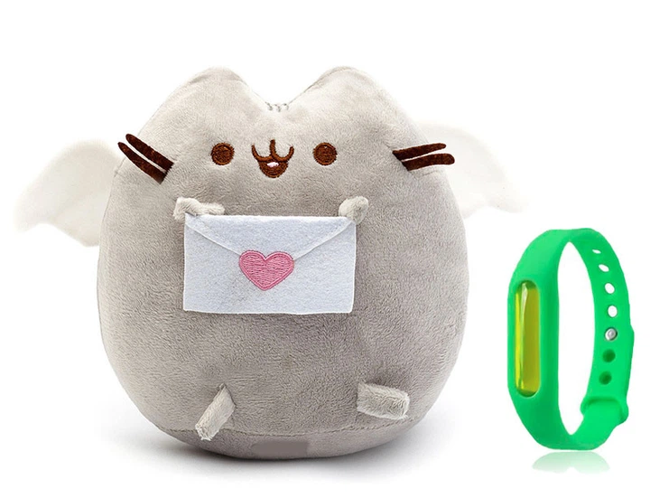 Набір М'яка іграшка Pusheen cat з листом Gray та Дитячий силіконовий браслет від комарів (vol-1089)
