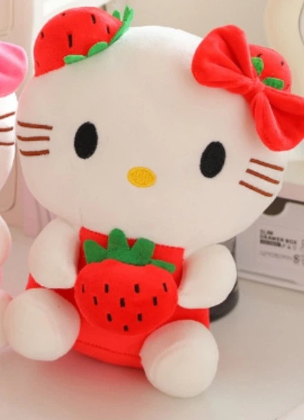 М'яка іграшка плюшева Hello Kitty Кітті з полуничкою 22см Червоно-біла