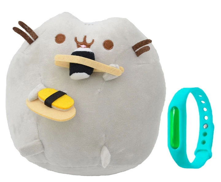 Набір М'яка іграшка Pusheen cat з суші Gray і дитячий силіконовий браслет від комарів (vol-1088)
