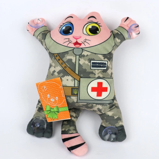 М'яка іграшка Патріотичний кіт на присосках Копиця (00284-149) Хакі