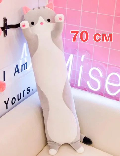 Іграшка м'яка 90 см подушка Кіт сірий для хлопчиків, для дівчат