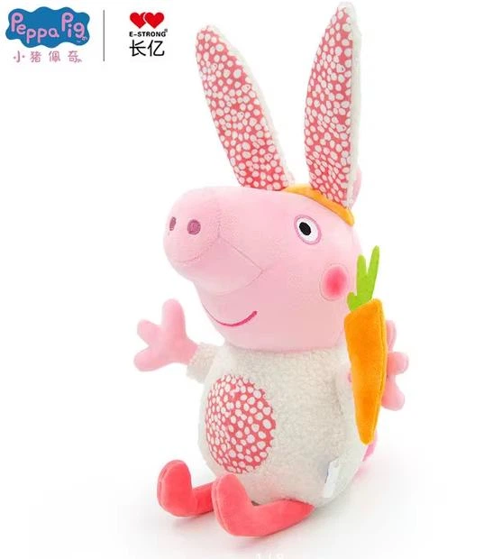Плюшева іграшка Свинка Пеппа з вушками та морквиною Заєць-Кролик 40 см у горошок Peppa з родини Пеппа Рожева